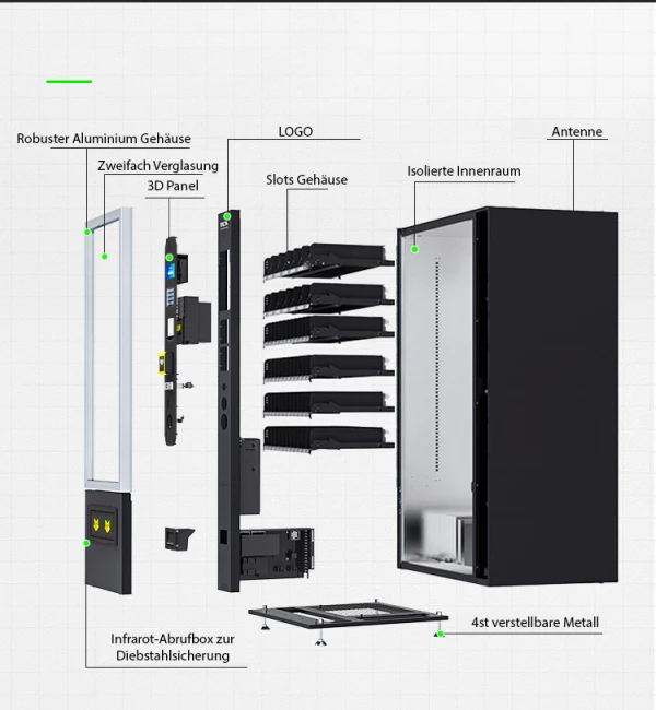 • Art der Ware: 72 Fächer für Snacks & Getränke