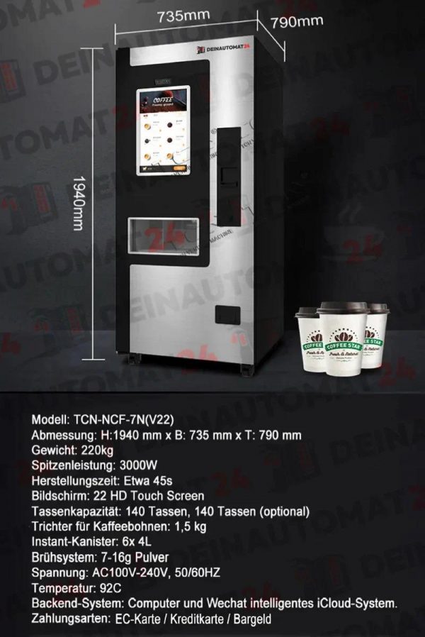 Der VZ 40 Slim Kaffeeautomat ist ein hochwertiger Kaffeeautomat, der Genuss und Wirtschaftlichkeit in Perfektion verbindet. Mit seinem 22-Zoll-Touchscreen und der intuitiven Bedienung können Kunden bequem ihre Lieblingsgetränke wählen und zubereiten lassen.