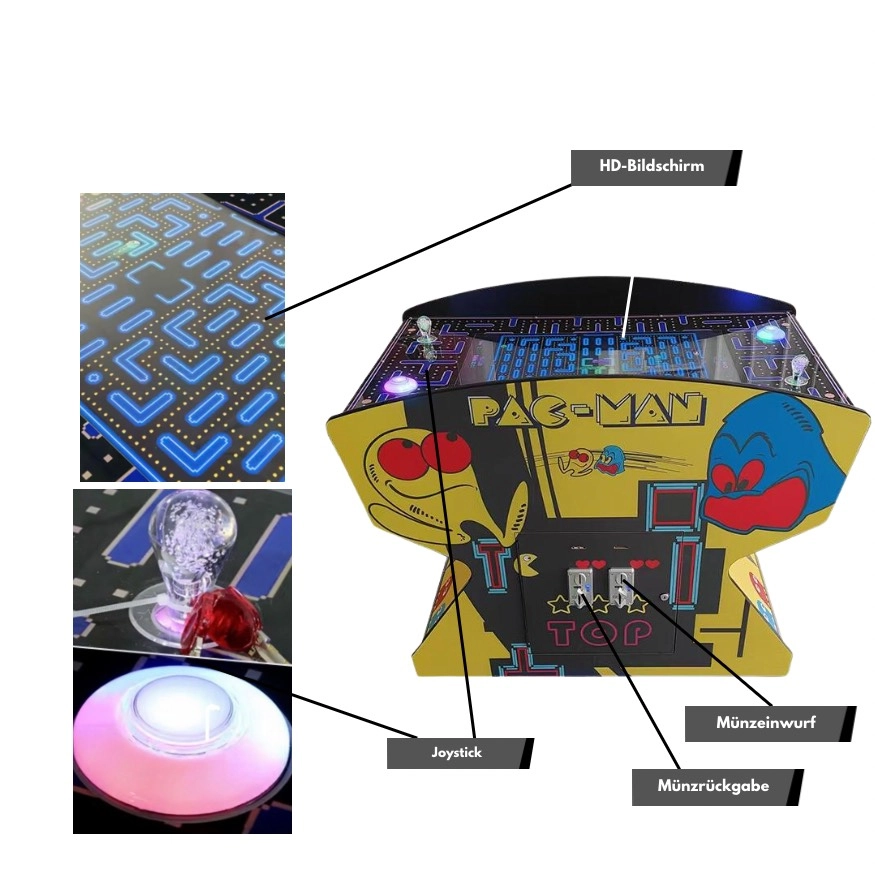 Dieser hochwertige 2-Spieler Pac-Man Tischautomat sorgt für Nostalgie, Aufmerksamkeit und dauerhaften Zusatzumsatz – perfekt für Gastronomie, Shisha-Bars, Spielhallen, Wartebereiche & Events.