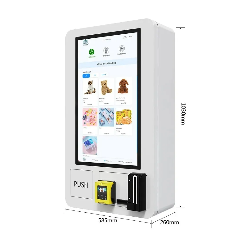 Dieser moderne Automaten-Kiosk vereint technische Raffinesse mit purer Unterhaltung! Mit seiner schlanken & robusten Metallkonstruktion und dem 32-Zoll-Touchscreen bietet er ein beeindruckendes Einkaufserlebnis, ob in Einkaufszentren, an Events oder im privaten Unterhaltungsbereich. Der Automat eignet sich zur Wandmontage oder zum Einbau und ist ideal für alle, die E-Zigaretten, Kosmetika, Tampons, Medikamente oder Kondome verkaufen möchten.