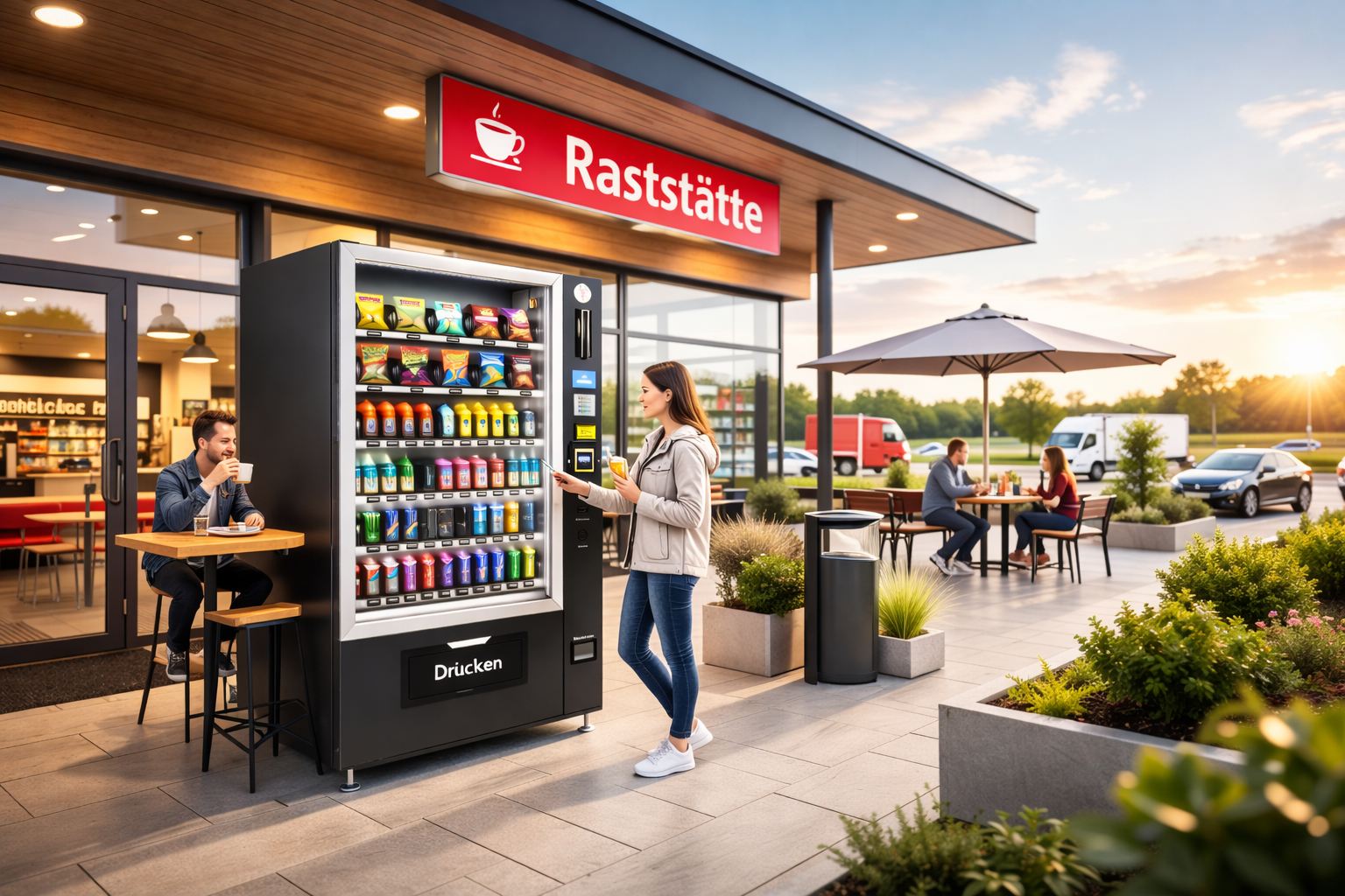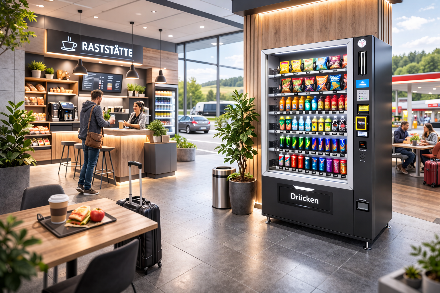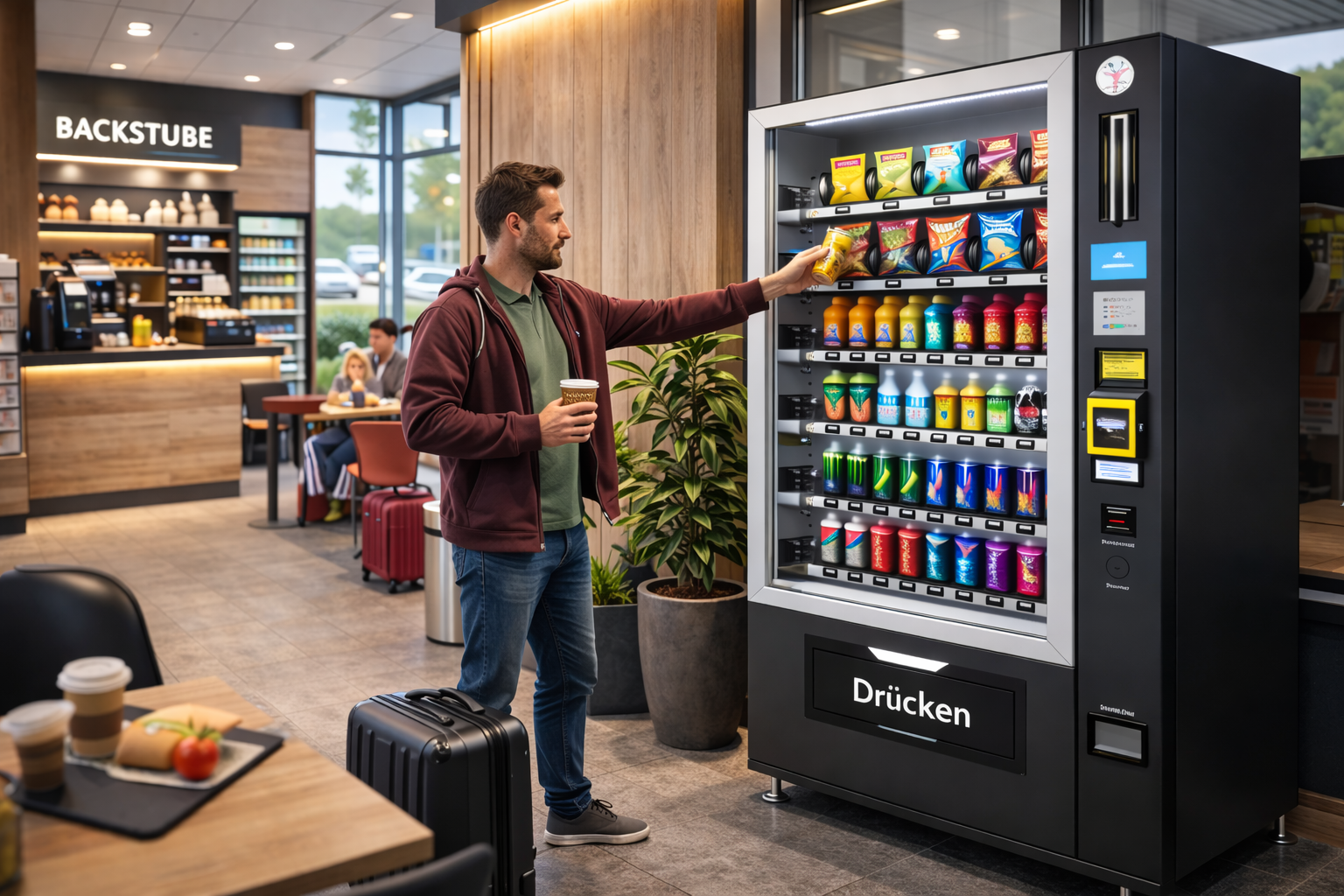 Effiziente Stärkung: Die Automaten sind prädestiniert für Durchreisende, die ohne große Zeitverluste eine kurze, erfrischende Pause einlegen möchten.